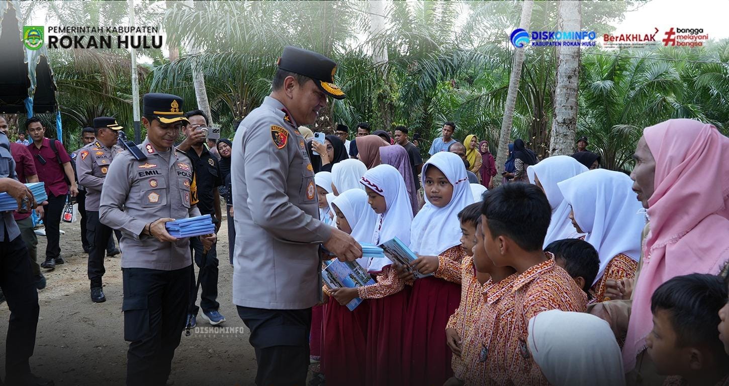 Tak hanya fokus pada infrastruktur, kunjungan tersebut juga diisi dengan aksi sosial di bidang pendidikan. Wakapolda Riau bersama Bupati Rohul menyerahkan bingkisan buku bacaan kepada anak-anak pelajar setempat, sebagai bentuk dukungan terhadap peningkatan literasi di daerah pedalaman.